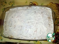 Сверху смазать майонезом, можно посыпать сыром. Разогреть духовку, поставить противень на 40-50 минут и запекать при температуре 180 градусов. |