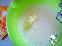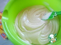 Добавить мягкое сливочное масло и все соединить на маленькой скорости миксера. Долго не взбивать, если будут небольшие крупинки от масла, они потом разойдутся. |