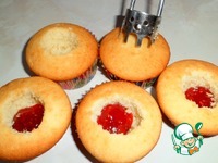 У будущих капкейков, вынуть часть теста. Наполнить джемом. Джем брать по вкусу. |