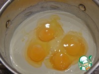 Затем добавить яйца, хорошенько все вместе взбить. |