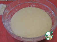 Полученную смесь влить в миску с просеянной мукой. Замесить не очень крутое тесто. Накрыть и убрать в теплое место для подъема. |