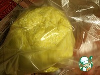 Добавить желток и пару ложек ледяной воды, быстро собрать тесто в шар и убрать в пакете в холодильник на полчаса. |
