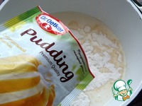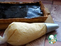 В выпеченную форму из теста выложить желе. Сверху отсадить пудинг. |
