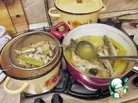 Так же потребуется, что-либо для бульона. Я использую запчасти от рыбки, которая идет на засолку, очень удобною. Вы можете использовать, что есть под рукой, хоть головы от креветок. |