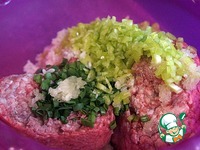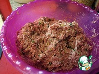 Приготовить начинку. В фарш вмешать мелко порезанные венгерский перец, лук, раздавленный чеснок, рис, посолить. |
