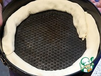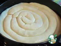 Круглую форму для запекания смазать сливочным маслом, укладывать колбаски из теста с начинкой спиралью. |