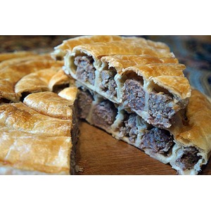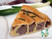 Описание: Пироги – любимые блюда моей жены Марины. Она готовит их чаще всего из слоеного теста, начинка может быть самой разнообразной: мясо, рыба, капуста или всего понемногу. И форма случается тоже самой разнообразной. В начинке этого пирога можно обойтись без риса, а добавить вымоченный в молоке батон, как в котлетный фарш.