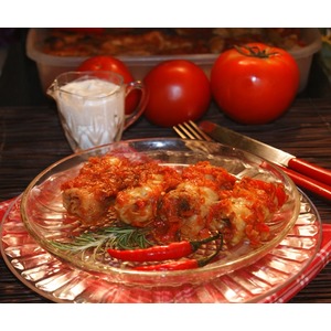 Залить соусом голубцы. Форму плотно закрыть фольгой и поместить в прогретую до 190*С духовку на один час. Ориентируйтесь на вашу духовку! |