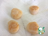 Готовые гребешки выкладываем на тарелку с бумажным полотенцем, чтобы впиталось лишнее масло. Промакиваем их сверху и сбоку другим бумажным полотенцем |