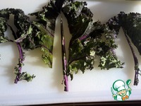 У листьев кейла вырезаем жесткие стебельки и разрываем руками на довольно крупные куски. Если у Вас другая зелень - действуйте в соответствии с Вашим продуктом |