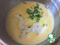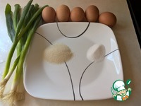 Включаем прогреваться духовку на 175 градусов Цельсия. Готовим продукты для омлета: яйца, соль, сахар и зеленый лук |