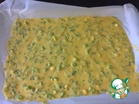 Выливаем омлетную массу на противень и разравниваем, так, чтобы сформировался прямоугольник. Ставим в духовку на 15 минут |