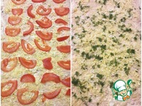 Далее слоями на лаваш: 1й слой- намазываем половину печени трески 2й - половину натертого сыра 3й - половину натертого яйца 4й - выкладываем весь помидор |