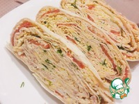 Сворачиваем в рулет и ставим в холодильник на 2 часа. Нарезаем на порции и подаем к столу. Приятного аппетита! |