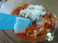 -нарезать лук репчатый тонко, чтоб нож просвечивался... |