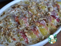 Залить картофель в форме молочно-яичной смесью. Сверху посыпать орехами. Запекать в разогретой духовке при 200гр 35 минут. |