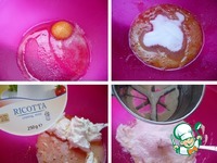 Яйцо взбить с щепоткой соли, добавить сахар и ванильный сахар, хорошо перемешать. Добавить рикотту. Муку смешать с разрыхлителем теста, порционно смешивать с массой. |