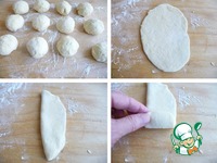 Сформировать шарики. У меня 12шт. Каждый шарик раскатать в овал, свернуть пополам. Скрутить в валик. |