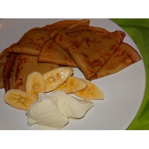 Подавать к столу блинчики лучше всего с мороженном и фруктами. |