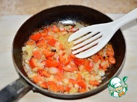 Лук и перец порезать кубиками, обжарить на растительном масле до легкой корочки. |
