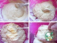 Сначала я работала венчиком, затем замес делала с помошью ложки. Втереть в тесто мягкое масло. Затем замес делала руками. |