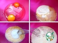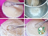 Все хорошо перемешать. Крахмал смешать с разрыхлителем добавить просеянную муку. Муку вводить в смесь частями, тщательно перемешивая, чтобы не было комочков. |