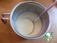 Делаем тесто. Готовим опару. Молоко должно быть тёплым и мы его подогреваем. Добавляем в молоко дрожжи и сахар. Очень хорошо соединяем венчиком. |
