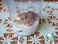 Пока стоит тесто, приготовить соус. В цилиндр от блендера влить сливки и выложить филе сельди, (у меня с икрой). |