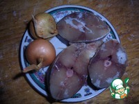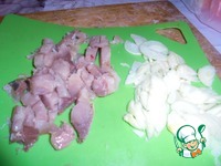 Для начинки приготовьте рыбу-нарежьте его на кусочки. Лук репчатый очистите. |