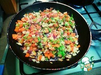 Все нарезанные овощи добавляем к луку и тушим, посолив, поперчив и добавив чеснока почти до мягкого состояния. Если вы используете свежий фенхель, то тоже тушите его с этими овощами. |