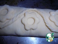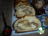 Тесто свернуть рулетом, выложить на противень, смазанный маслом, швом вниз. Дать расстояться в течение 30 мин. Смазать поверхность пирога взбитым желтком. |