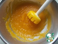 Когда тыква станет мягкой, слить лишнюю жидкость и пюрировать блендером. |