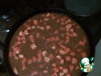 Залить все соусом, поставить на огонь, довести до кипения. Убавить огонь и тушить на слабом огне 1,5 часа. При необходимости соус можно загустить картофельным крахмалом. |