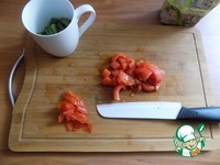 С помидора сняла кожицу, ошпарив его перед этим кипятком и нарезала мелким кубиком его. |