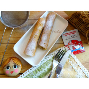 Подаём. Скручиваем рулетиком и присыпаем сахарной пудрой сверху. |