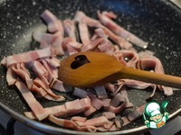 Бекон нарезать на тонкие полоски и обжарить на 1 ст. ложке подсолнечного масла. |
