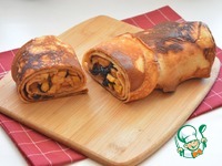 Сверните аккуратно рулетом, подворачивая края внутрь. Поместите штрудель в форму для запекания и поставьте в духовку. Выпекайте 20 минут при температуре 180 градусов |