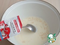 Молоко (1 ст.) подогреть, добавить сахар (1 ст. л.), добавить 6 гр сухих быстродействующих дрожжей "Саф-момент". |
