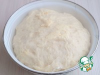 Замесить тесто. Тесто накрыть пищевой пленкой или полотенцем и поставить в теплое место для подъема. |