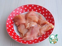 Куриное филе нарезать кусочками. |