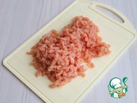 Пропустить куриное филе через крупную решетку мясорубки или нарезать мелкими кубиками. |