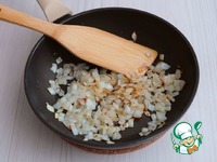 Репчатый лук (1 шт.) нарезать мелкими кубиками. Добавить на сковороду 2 ст. ложки растительного масла. Пассеровать лук до легкой золотистой корочки. |
