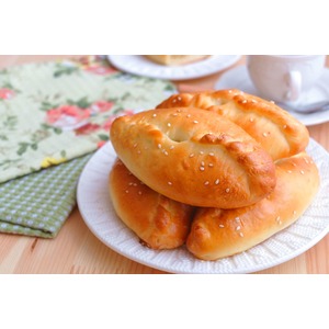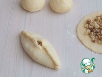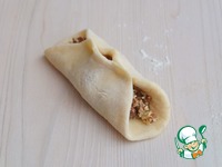 Тесто разделить на равные кусочки, примерно по 60 гр, сформовать лепешки, выложить приготовленный фарш на середину каждой лепешки, края соединить, оставляя в центре небольшое отверстие. |