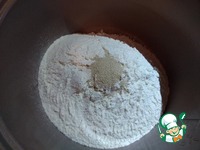 В просеянную муку всыпаем дрожжи и перемешиваем. |