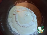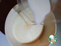 К яичной смеси добавляем чуть-теплое молоко, еще раз перемешиваем. |