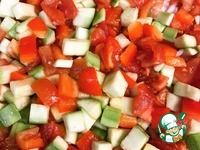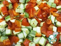 Овощи порезать небольшим кубиком, посолить-поперчить, добавить чуть масла растительного, перемешать. |