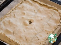 Проколоть вилкой пирог и посередине сделать небольшое отверстие. Поставить в разогретую духовку при температуре 180 градусов на 40 минут. |
