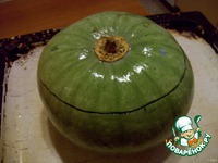 У круглой тыквы срезаем верхушку, выбираем мякоть. |