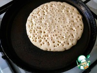 Сковороду смазать растительным маслом и налить туда половину половника теста и жарить только с одной стороны до румяного цвета. |