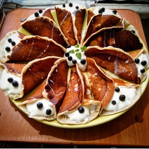 Описание: Ароматные, мягкие блинчики с нежным сливочным кремом и свежими ягодами!